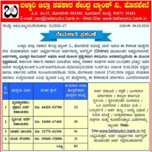 ಇದೀಗ ಆ ಎಲ್ಲ ಪ್ರಶ್ನೆಗಳಿಗೆ ಸ್ಪಷ್ಟ ಉತ್ತರ ಬಂದಿದೆ. ಬಳ್ಳಾರಿ ಜಿಲ್ಲಾ ಸಹಕಾರ ಕೇಂದ್ರ ಬ್ಯಾಂಕ್ ತನ್ನಲ್ಲಿ ಖಾಲಿ ಇರುವ ಹುದ್ದೆಗಳಿಗೆ ನೇಮಕಾತಿ ಪ್ರಕಟಿಸಿದ್ದು, ಒಟ್ಟು 82 ಹುದ್ದೆಗಳಿಗೆ ಅರ್ಜಿ ಆಹ್ವಾನಿಸಿದೆ. ಇದು ನಿಜವಾಗಿಯೂ ಸಾವಿರಾರು ಯುವಕರಿಗೆ ಹೊಸ ಆಶಾಕಿರಣವಾಗಿದೆ.