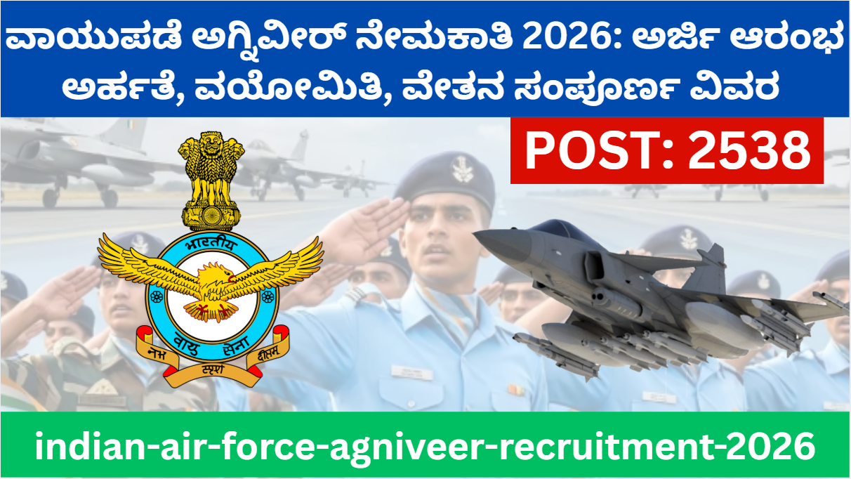 ವಾಯುಪಡೆ ಅಗ್ನಿವೀರ್ ನೇಮಕಾತಿ 2026: ಅರ್ಜಿ ಆರಂಭ | ಅರ್ಹತೆ, ವಯೋಮಿತಿ, ವೇತನ ಸಂಪೂರ್ಣ ವಿವರ