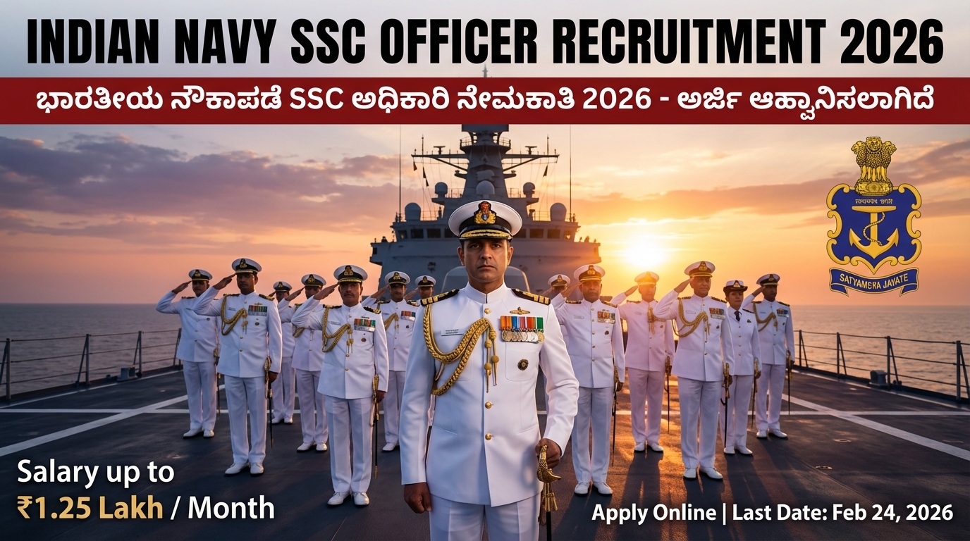 Indian Navy SSC Officer Recruitment 2026: ₹1.25 ಲಕ್ಷ ಸಂಬಳದ 260 Officer ಹುದ್ದೆಗಳು – ಪುರುಷರು, ಮಹಿಳೆಯರಿಗೆ ಭರ್ಜರಿ ಅವಕಾಶ