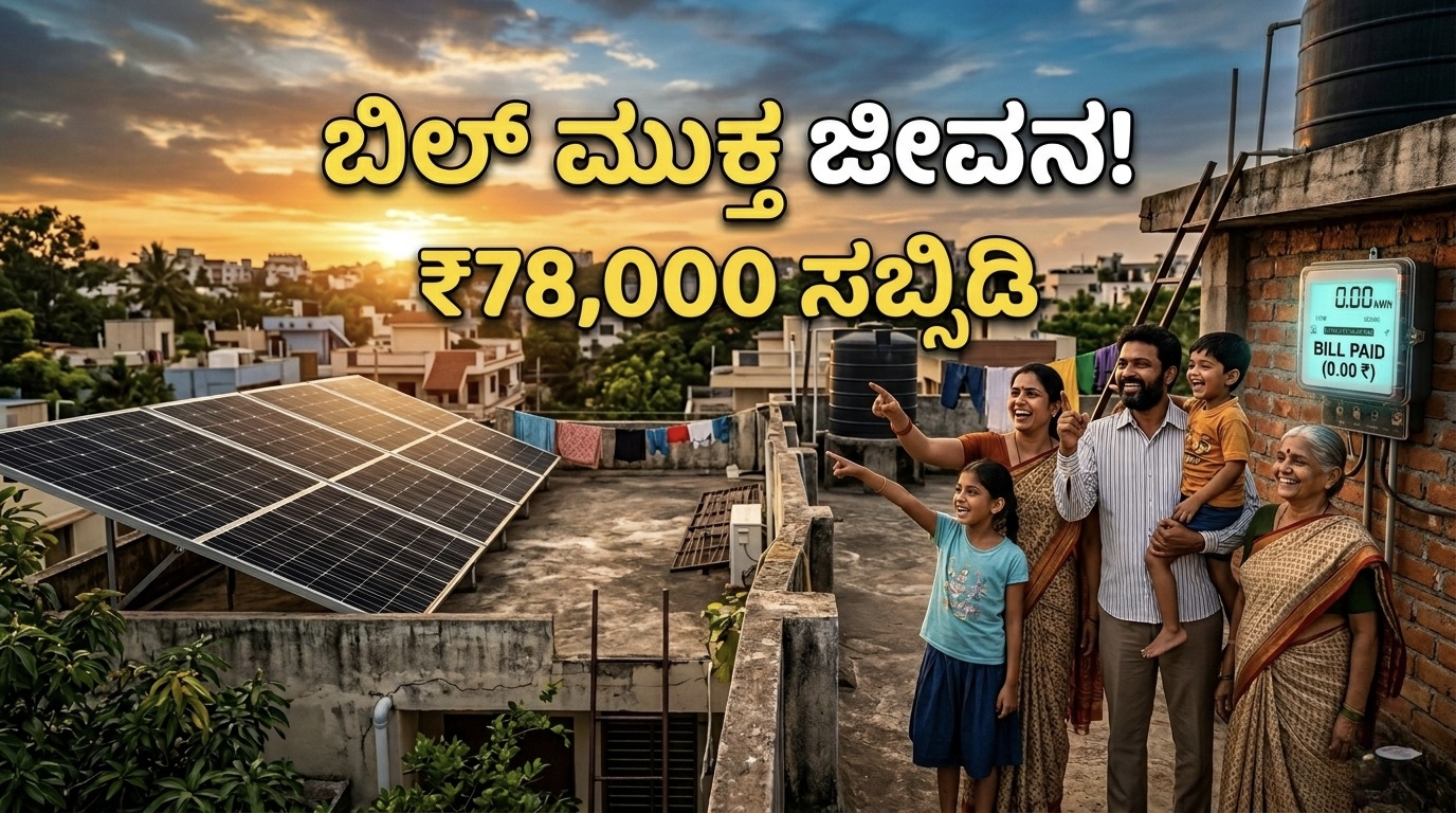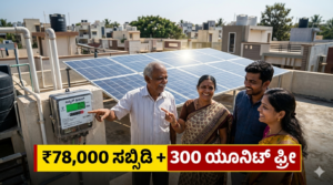 ₹78,000 ಸಬ್ಸಿಡಿ, 300 ಯೂನಿಟ್ ಉಚಿತ ವಿದ್ಯುತ್, ನೆಟ್ ಮೀಟರಿಂಗ್ ಮೂಲಕ ಆದಾಯ—ಇವೆಲ್ಲವನ್ನು ಒಟ್ಟಿಗೆ ನೀಡುವ ಯೋಜನೆ ಇದು.