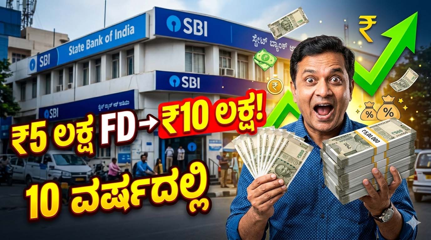🏦 SBI FD Scheme: SBI ಬ್ಯಾಂಕಿನಲ್ಲಿ ₹5 ಲಕ್ಷ Fixed Deposit ಇಟ್ಟರೆ 10 ವರ್ಷಕ್ಕೆ ಎಷ್ಟು ಹಣ ಸಿಗುತ್ತದೆ? ಸಂಪೂರ್ಣ ಲೆಕ್ಕ ಇಲ್ಲಿದೆ!