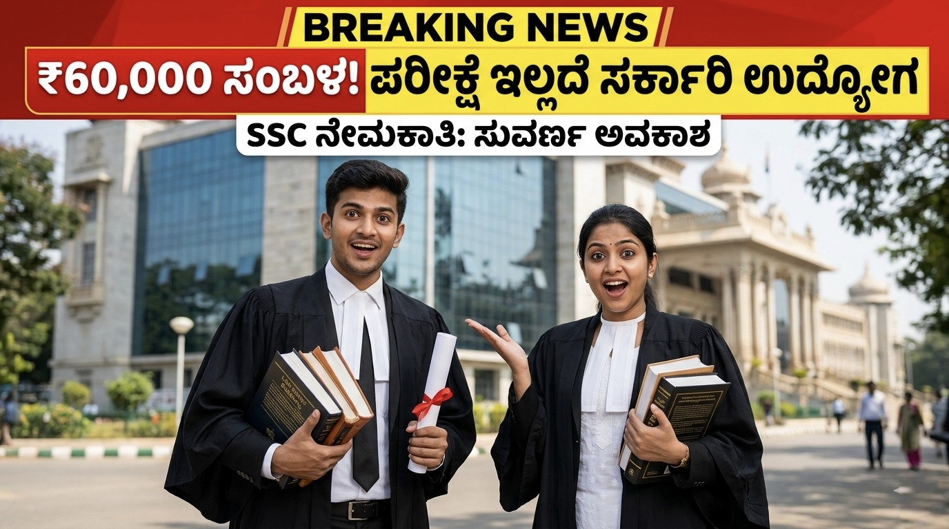 SSC Recruitment 2026: ಕಾನೂನು ಪದವೀಧರರಿಗೆ ಬೆಂಗಳೂರಿನಲ್ಲಿ ₹60,000 ಸಂಬಳದ ಉದ್ಯೋಗ. ಪರೀಕ್ಷೆಯಿಲ್ಲದೆ ನೇರ ಸಂದರ್ಶನ ಮೂಲಕ ಆಯ್ಕೆ. ಅರ್ಜಿ ವಿಧಾನ ತಿಳಿಯಿರಿ.